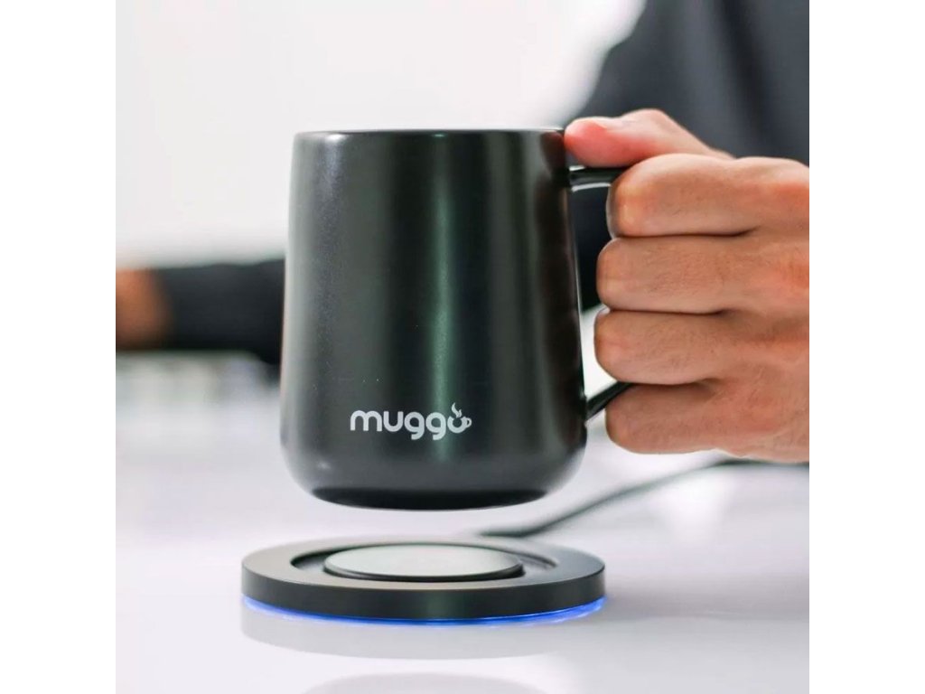 Inteligentný vyhrievaný hrnček Muggo QI Grande je skutočný unikát. Jednoduchým položením na ohrievací tanier ohreje váš nápoj na ideálnu teplotu 55 °C a udrží ho tak po celý deň. Začína sa ohrievať automaticky a po dosiahnutí požadovanej teploty sa prepne do udržiavacieho režimu. Vďaka 24 W technológii ohreje váš nápoj na požadovanú teplotu do jednej minúty.