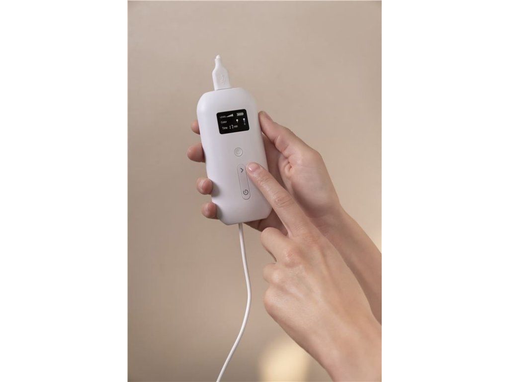 - Režim 3: Tmavé skvrny - zelené světlo: Vyrovnává tón pleti tím, že redukuje pigmentaci jizev a stařeckých skvrn.