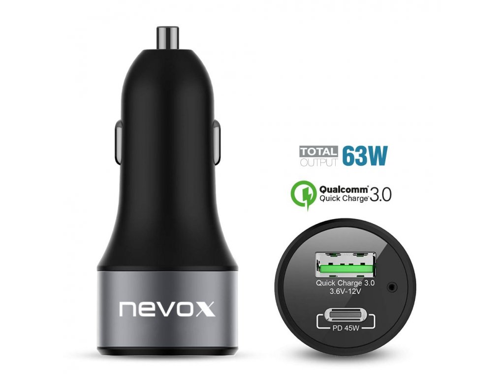 Nevox – 63W USB-C autonabíječka + QC3.0 Kfz