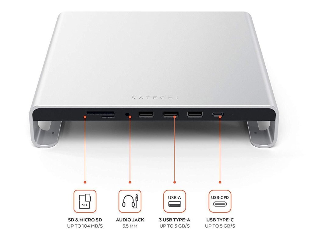 Satechi Aluminum Monitor Stand Hub for iMac - Silver